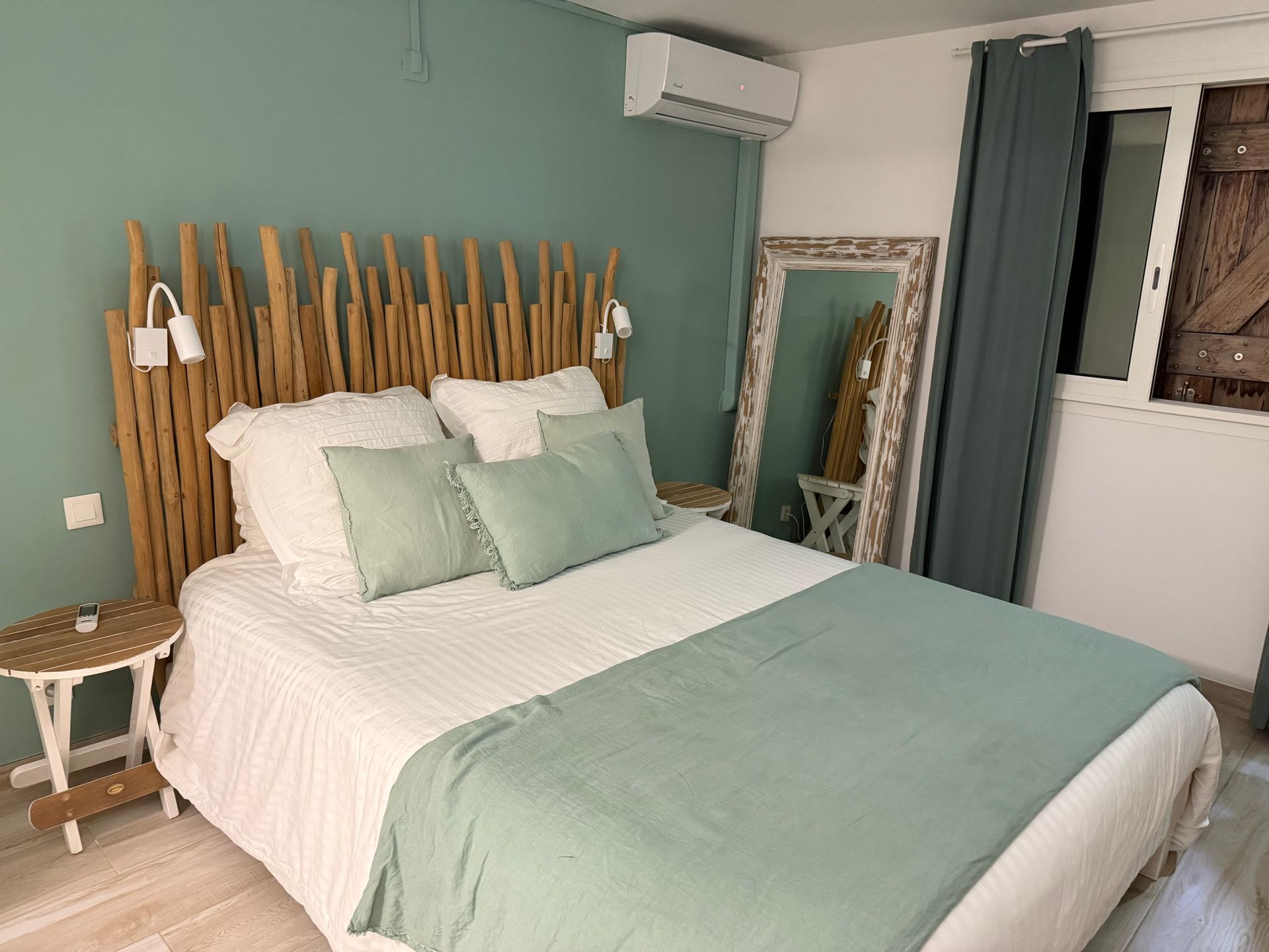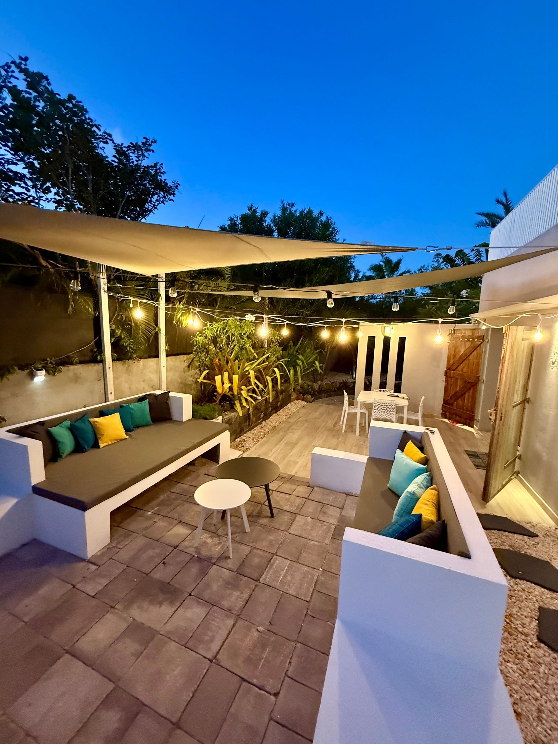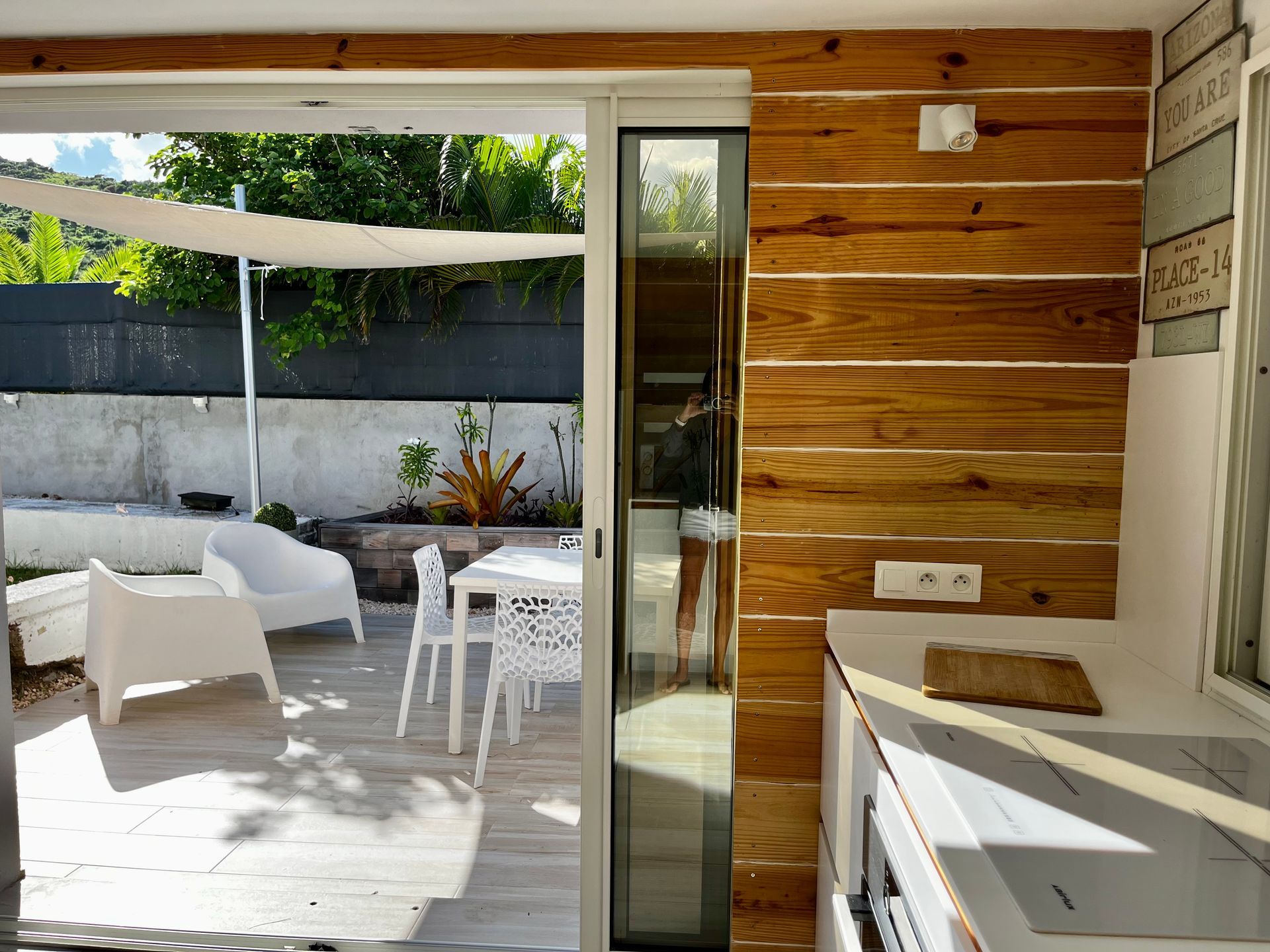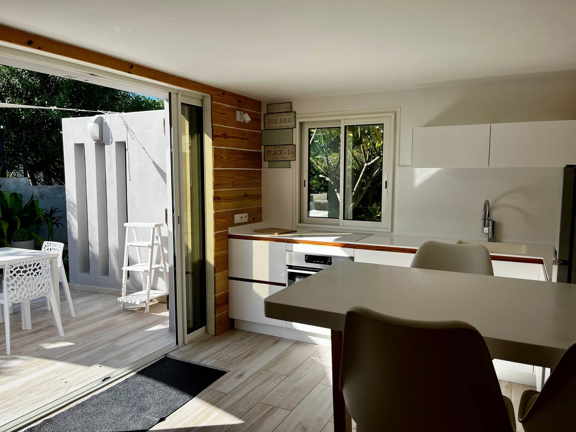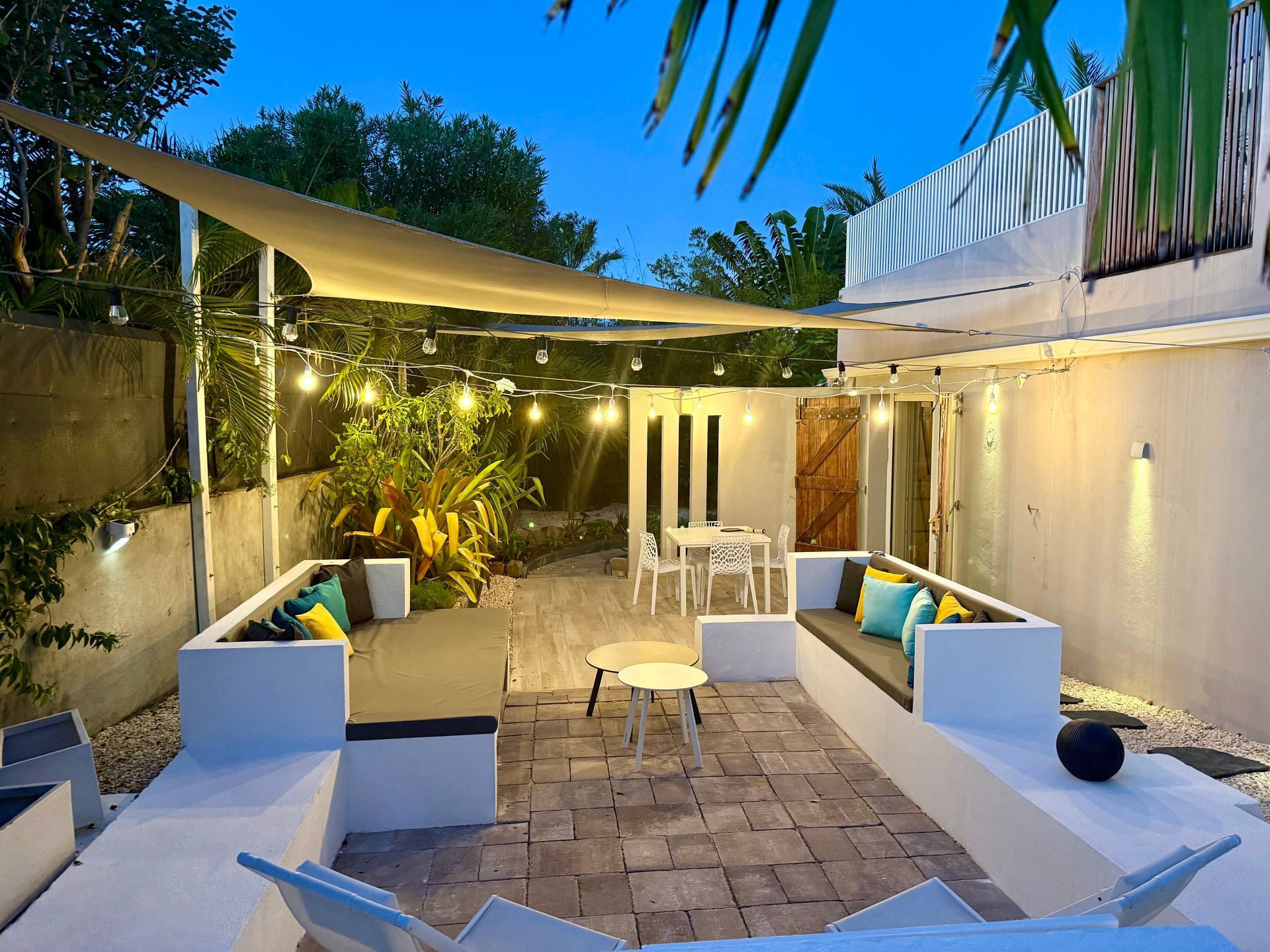 Enjoy the island lifestyle with a private garden, a large terrace, and a welcoming outdoor lounge perfect for morning coffees or evening barbecues. Guests also have access to a kayak and paddleboard, making it easy to explore the crystal-clear waters of Pinel Island, just minutes away.