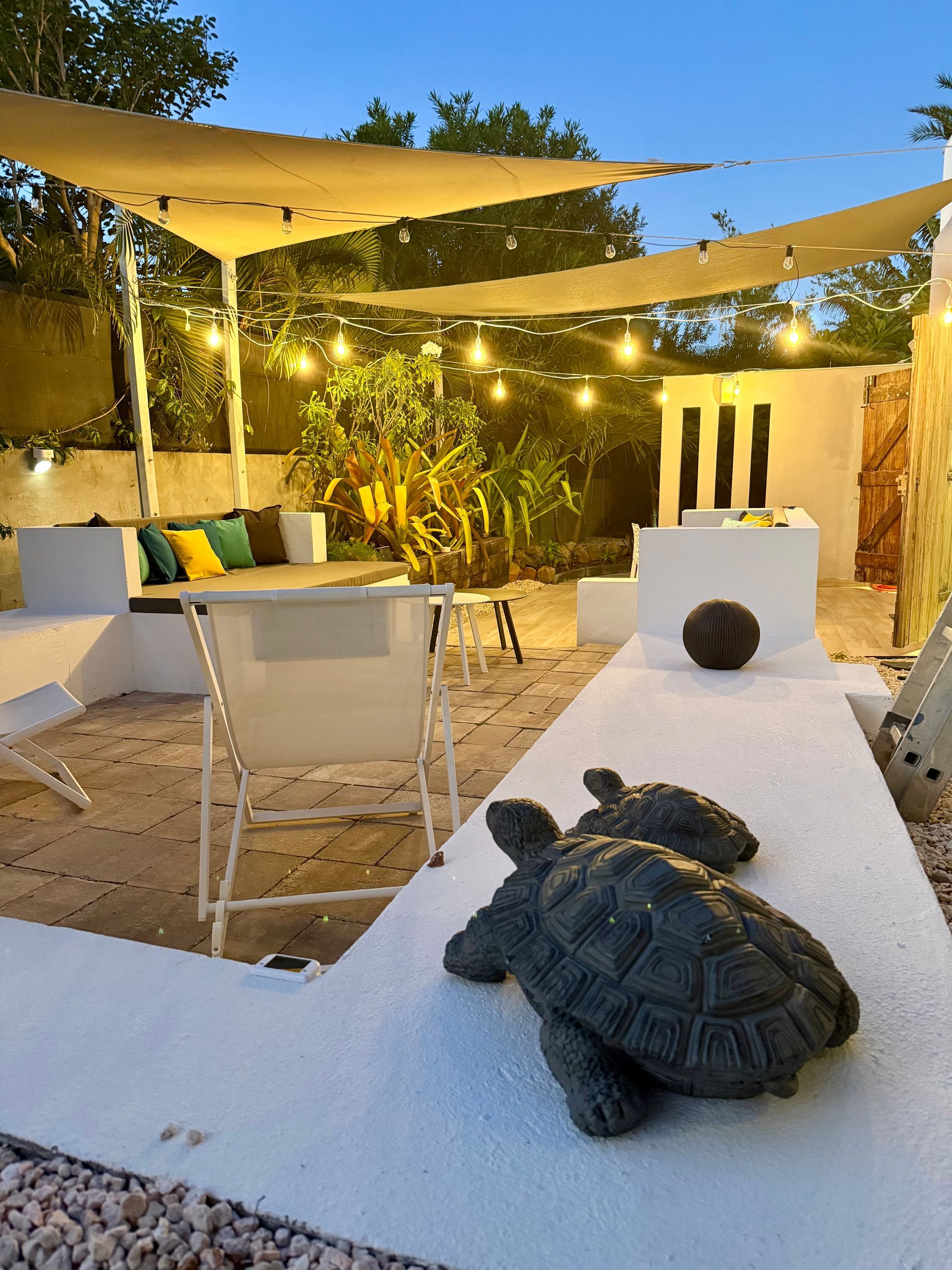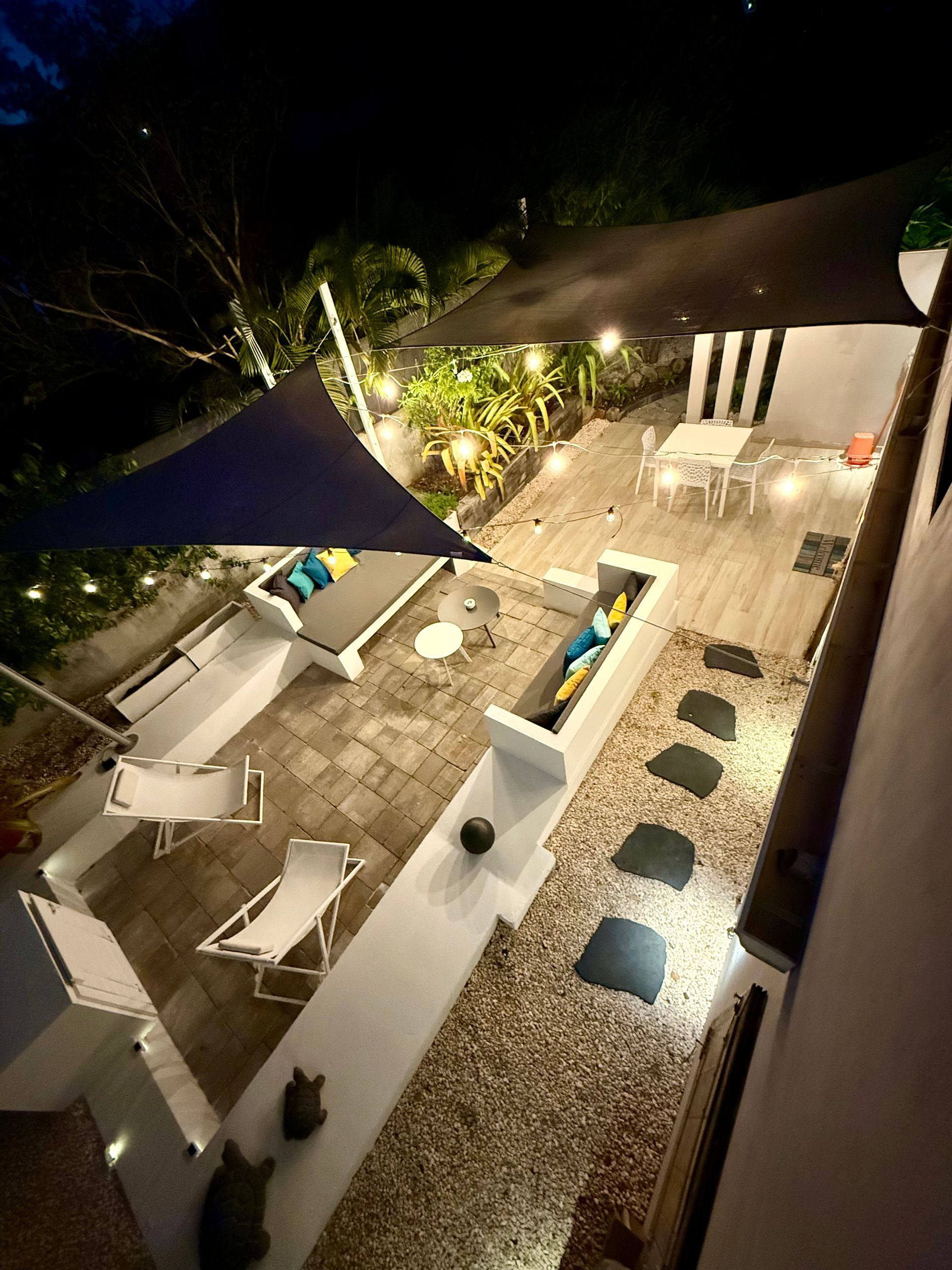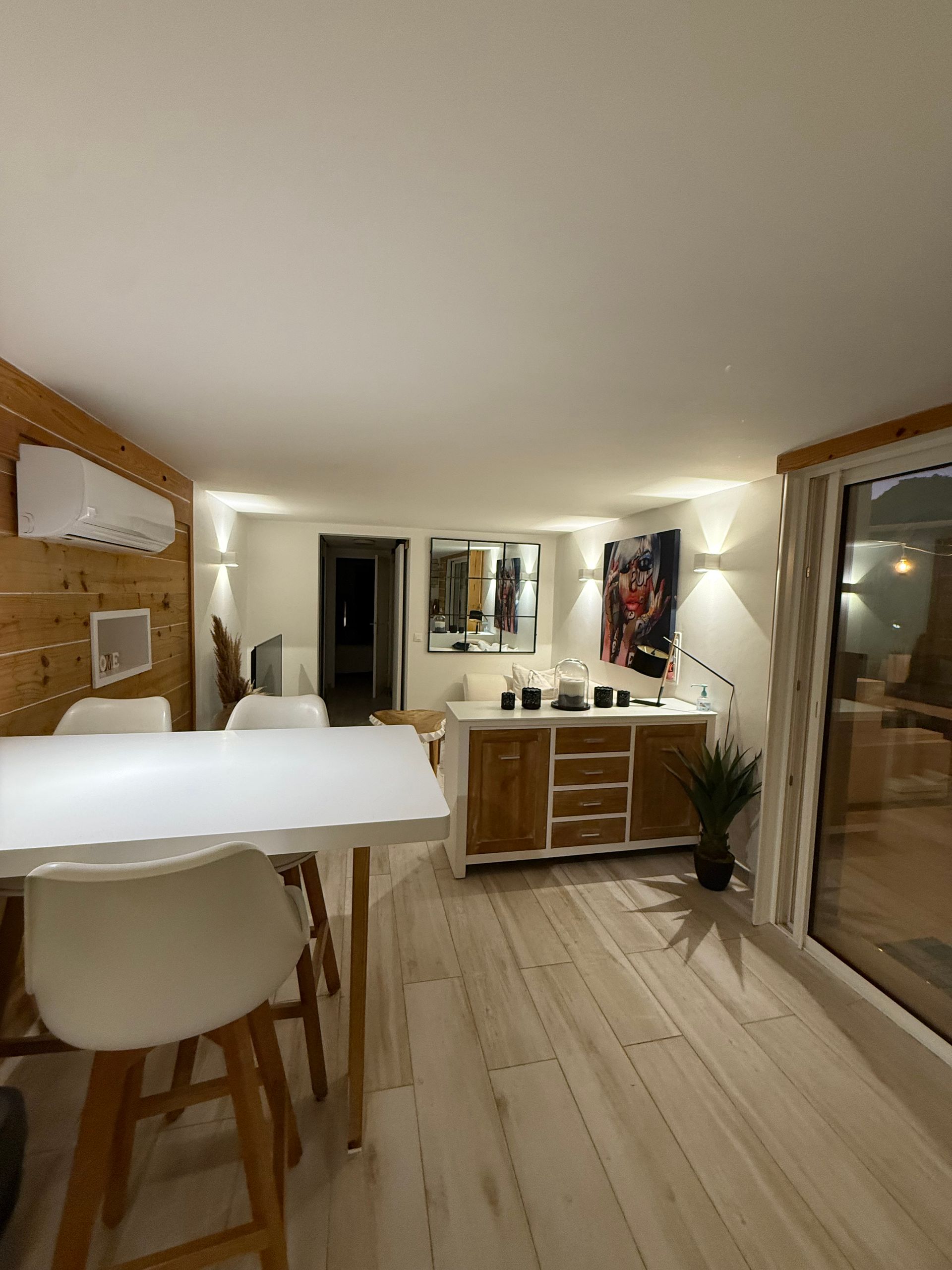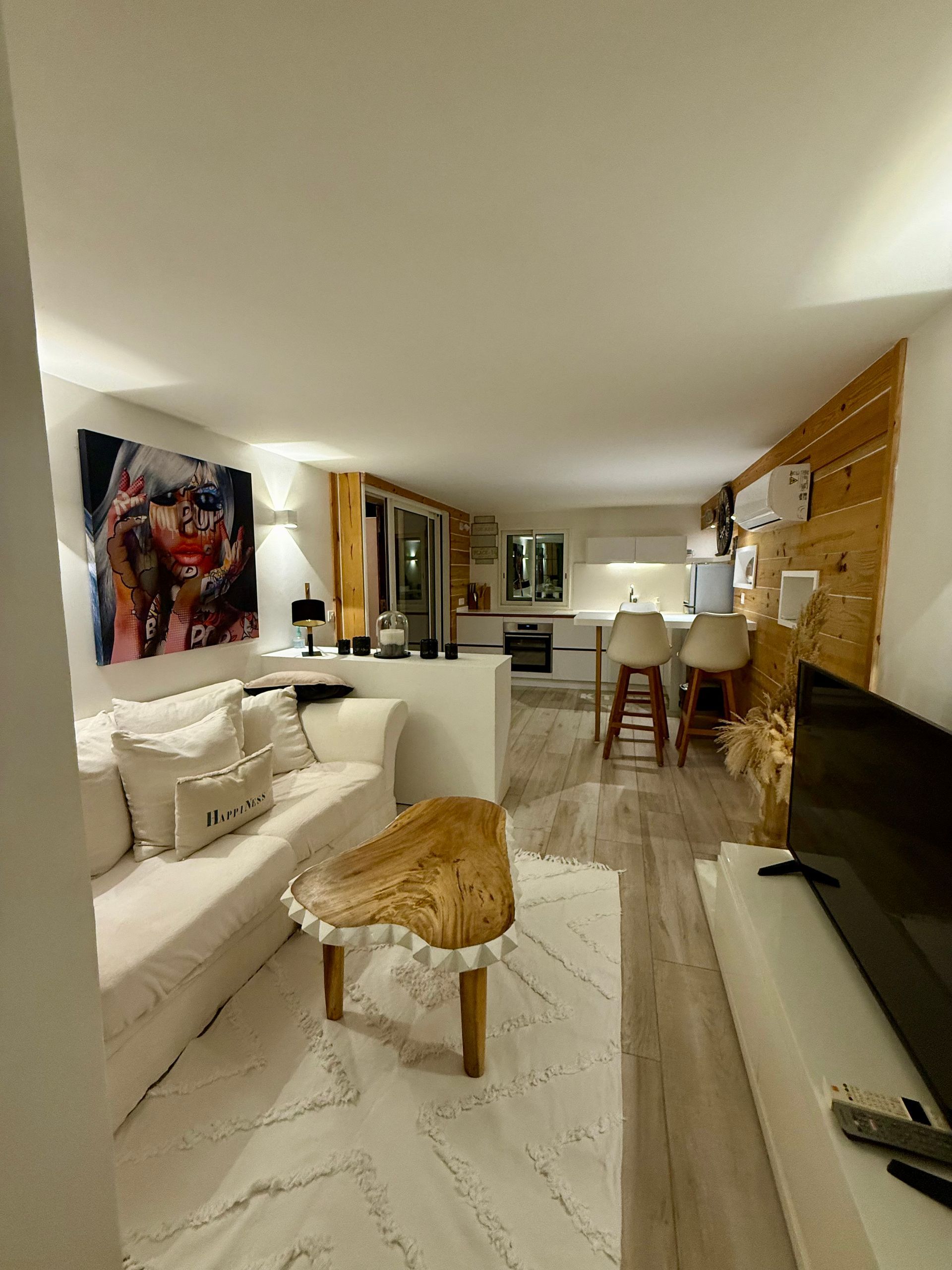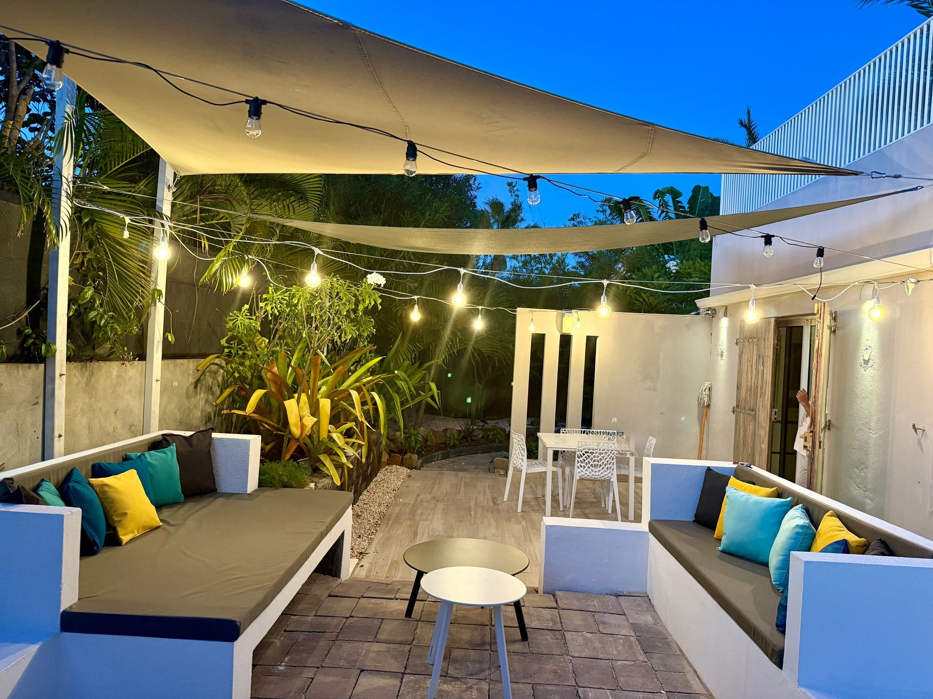 Enjoy the island lifestyle with a private garden, a large terrace, and a welcoming outdoor lounge perfect for morning coffees or evening barbecues. Guests also have access to a kayak and paddleboard, making it easy to explore the crystal-clear waters of Pinel Island, just minutes away.
