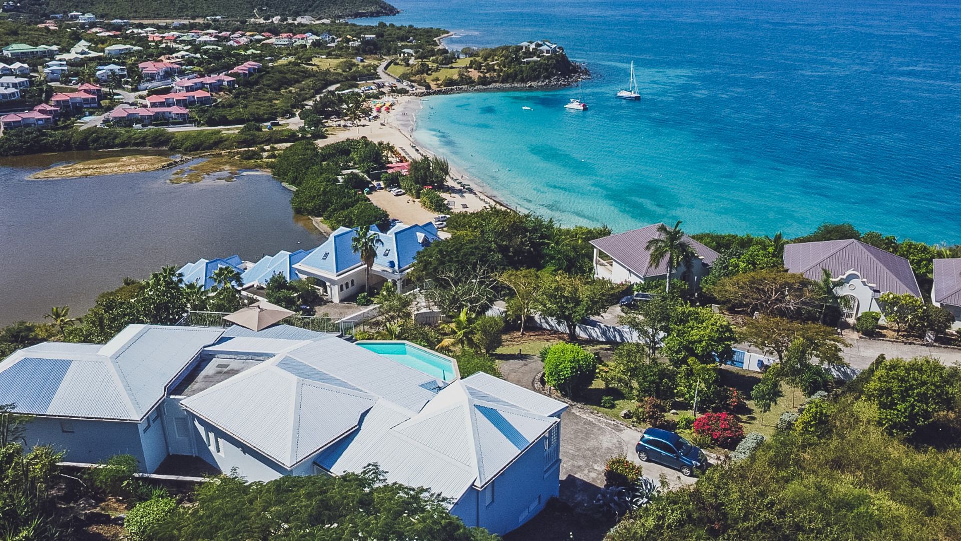 Set on the exclusive hillside of Happy Bay, Villa Lucie is a peaceful retreat that pairs Caribbean comfort with refined artistic flair.