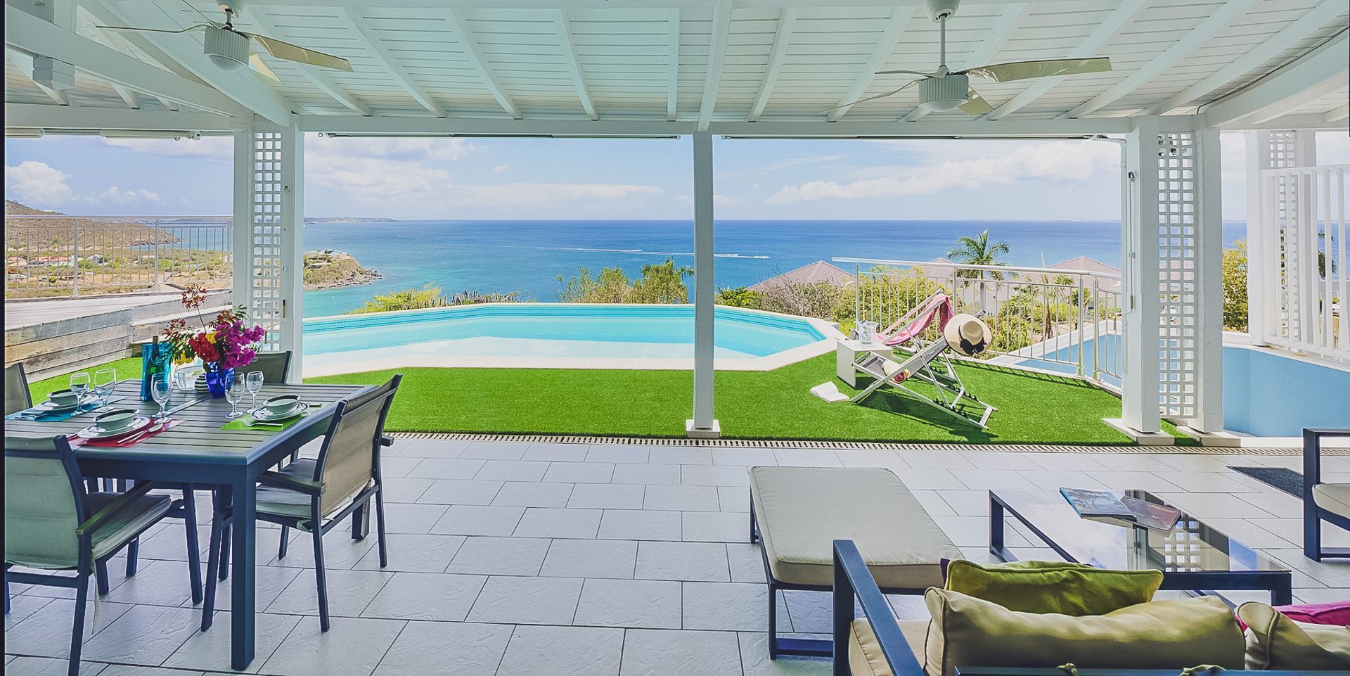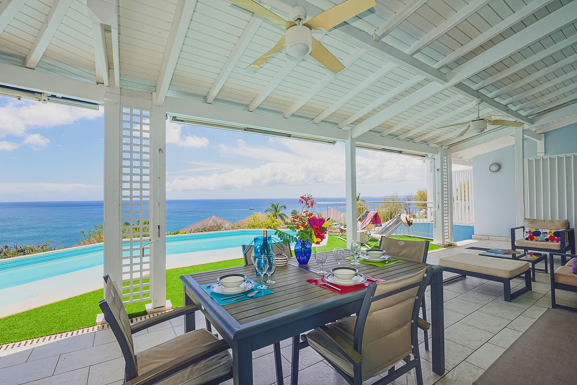 Enjoy ocean views from nearly every corner of the property. The terrace is designed for long lunches and sunset cocktails, while the pool and solarium are perfect for unwinding under the Caribbean sky.