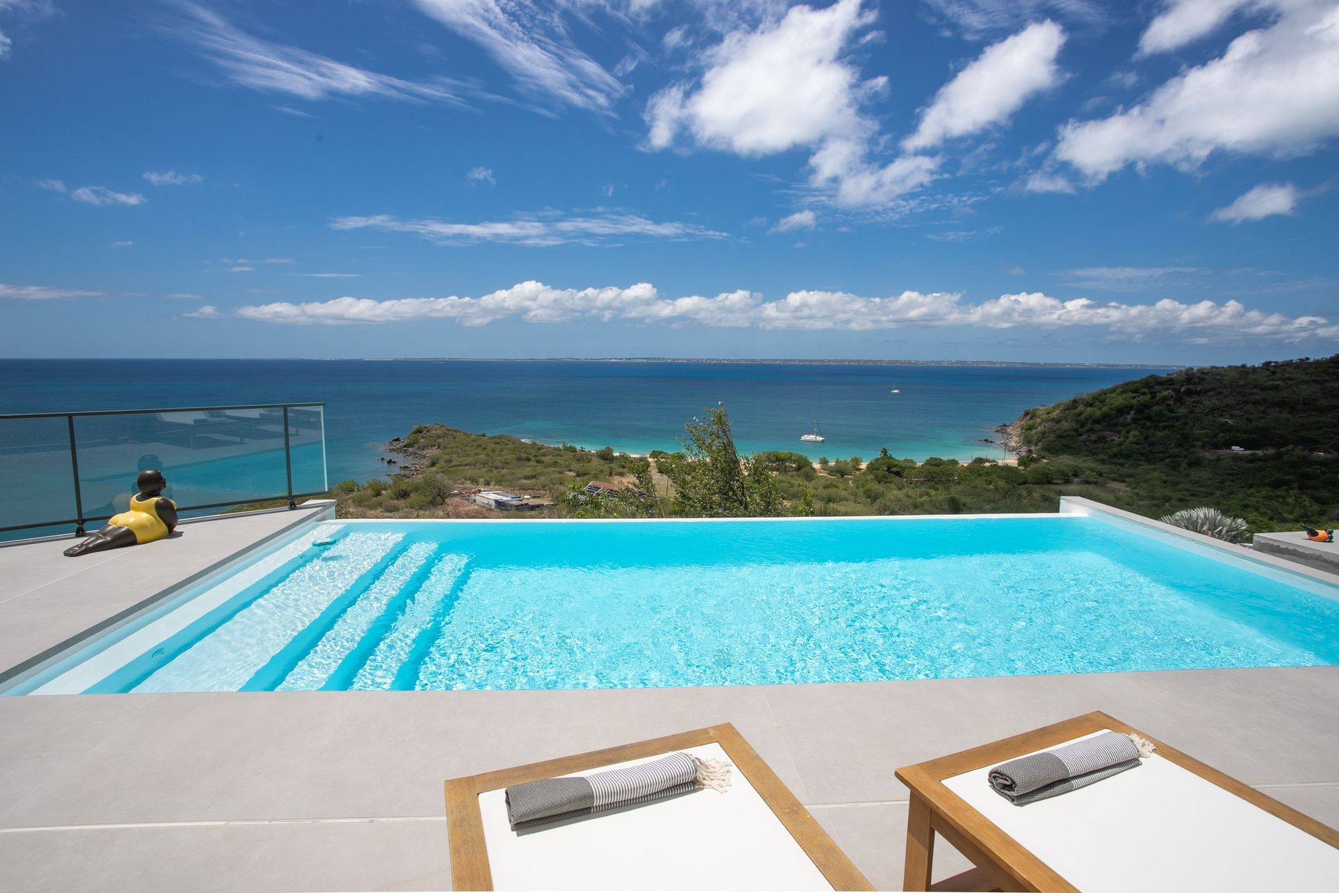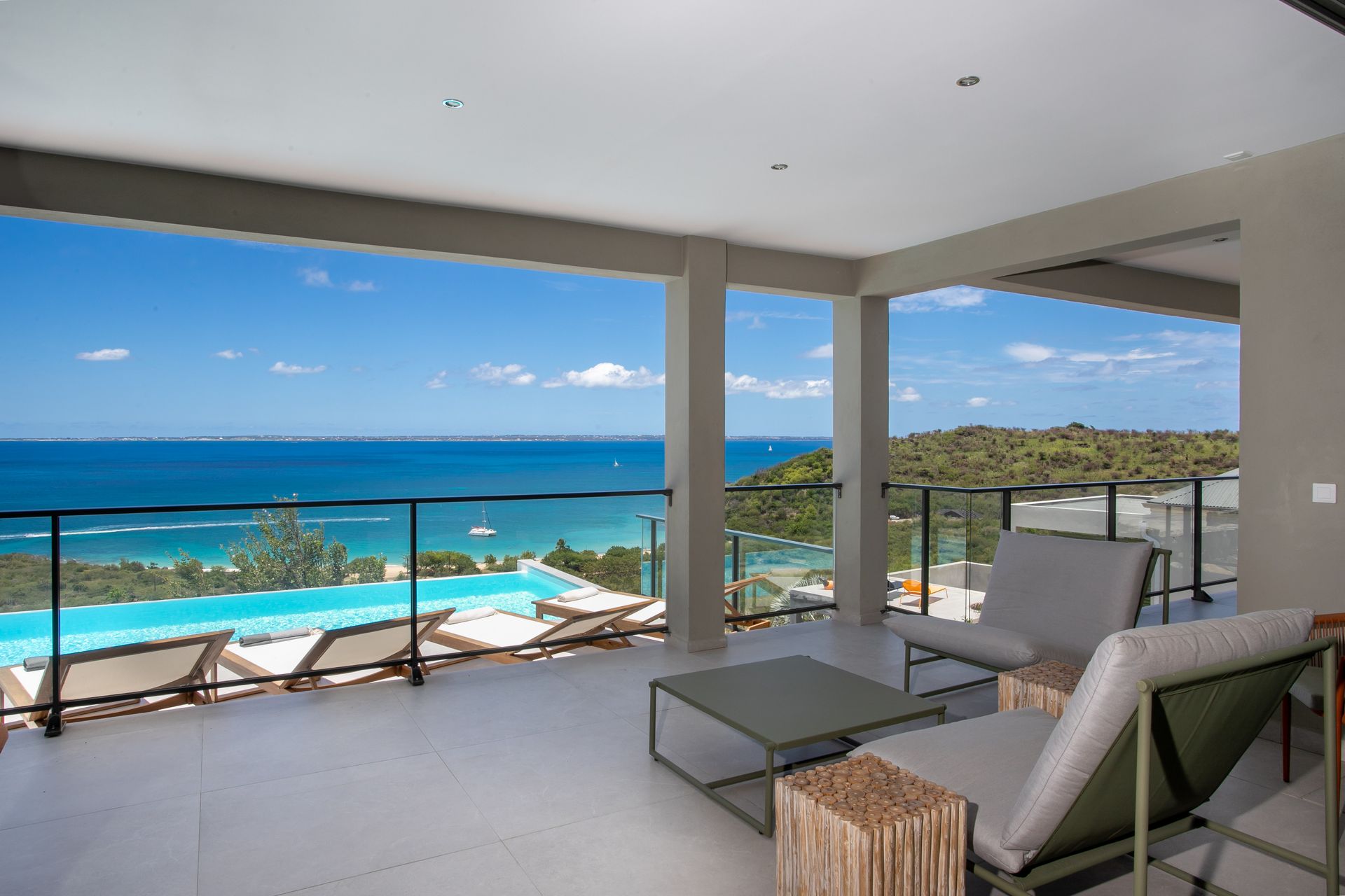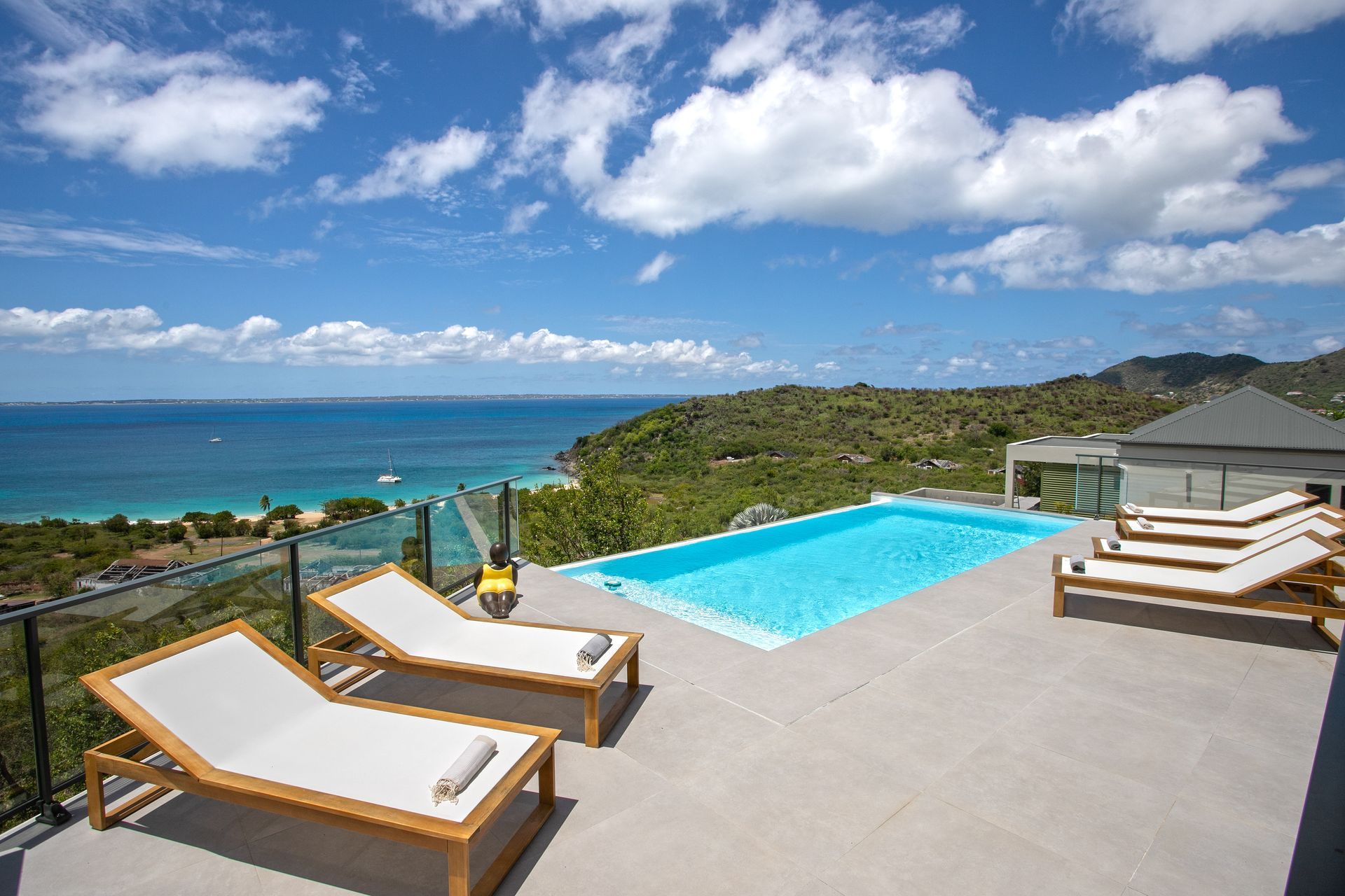 With panoramic views stretching over the turquoise sea to Anguilla, this luxurious 3-bedroom villa is designed for total relaxation — whether you’re floating in the infinity pool, enjoying a sunset BBQ under the gazebo, or walking down to the beach via the private trail.