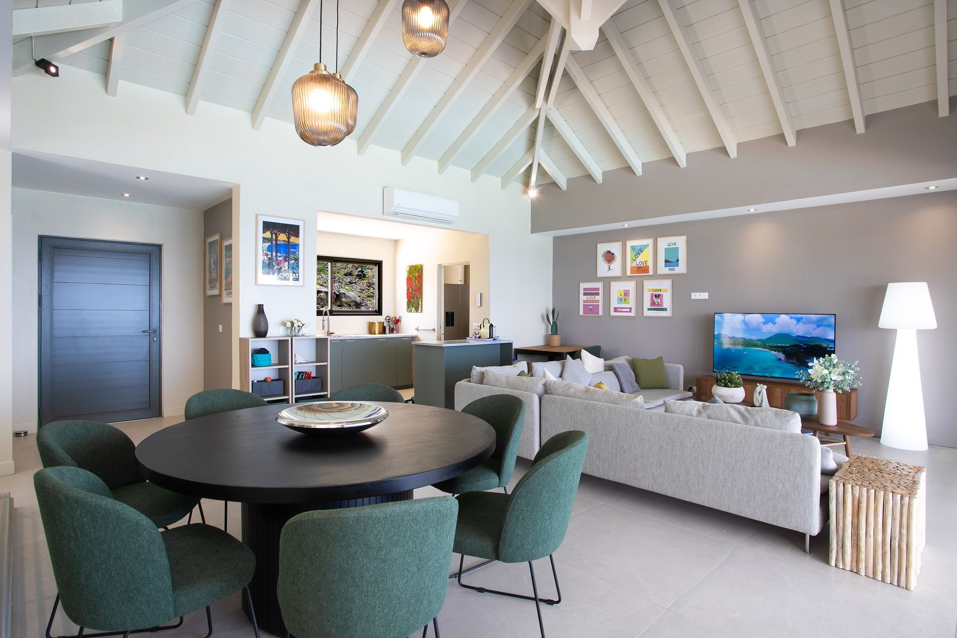 Elegant living spaces with high ceilings and sea views